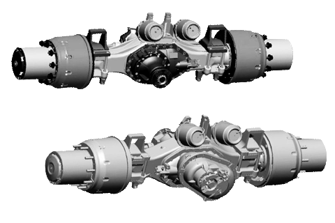 鑄造橋殼 參數(shù)及尺寸 軸荷 16T 制動器 φ410*220 懸架 板簧 驅(qū)動形式 輪邊減速 總寬A 2076-2152 輪距B 1800-1880 板簧中心距C 930-1040 被動輪直徑 300 速比 3.866/4.266/4.769/5.262/5.92/6.733/7.63/8.88